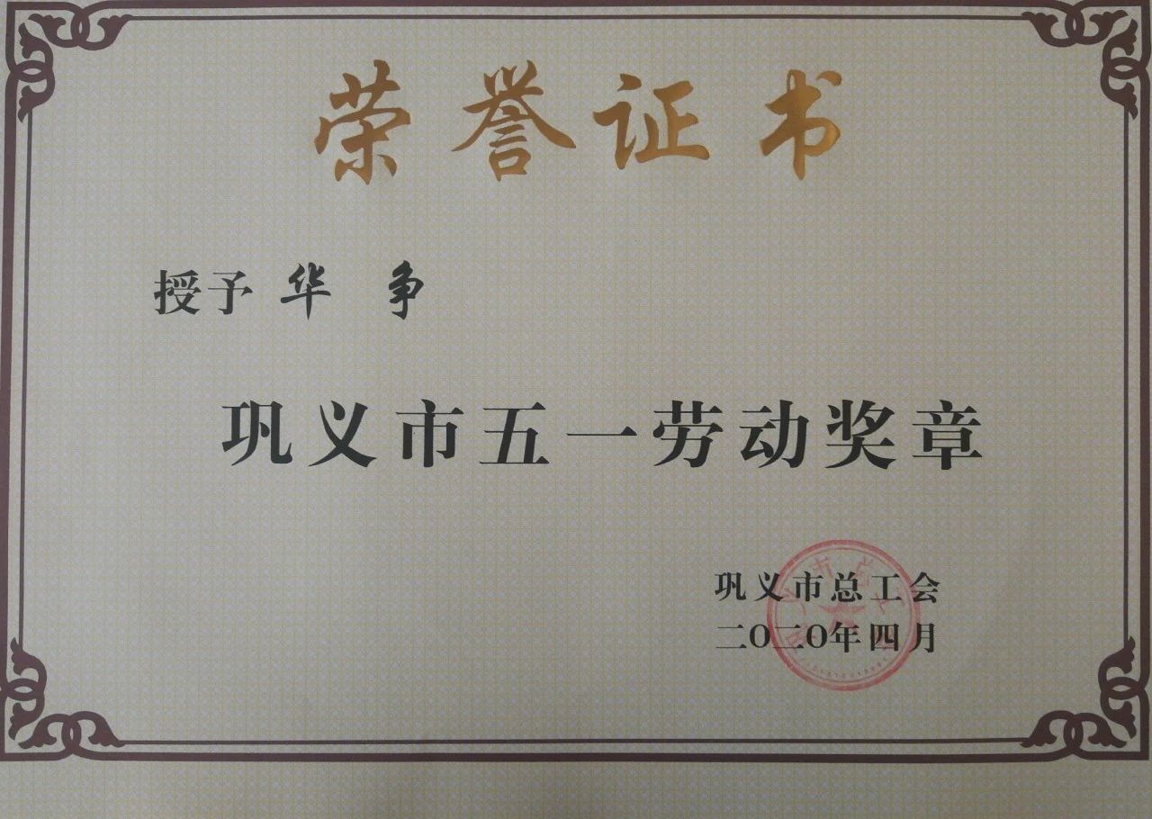中孚技術公司華爭同志獲得“鞏義市五一勞動獎章”