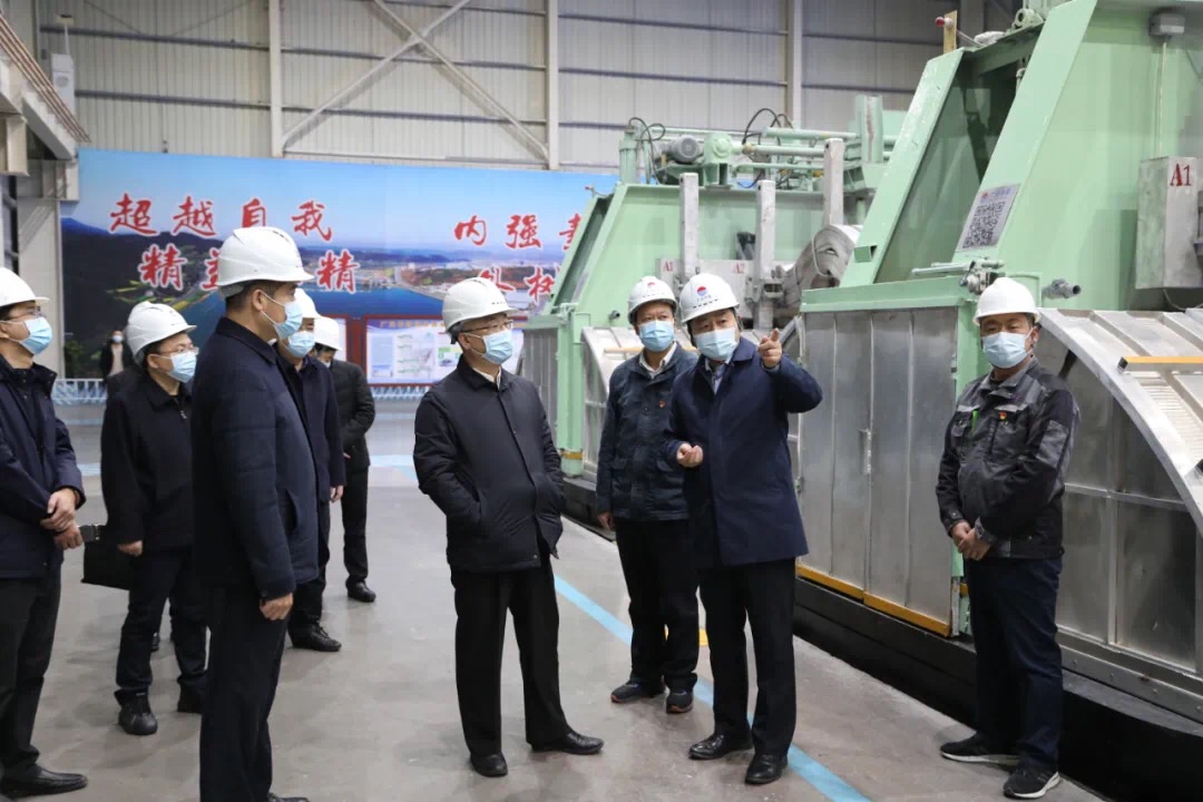 調研期間,王雁飛書記一行仔細了解了廣元中孚的基本情況和建設背景,聽取了廣元市有關負責人對廣元市打造千億級鋁產業基地的規劃布局和招商情況介紹。在園區鋁企業產品展臺前,王雁飛書記饒有興致地察看了鋁基產業產品,對廣元經開區致力于做大做強鋁基材料產業的發展思路充分贊同,希望各企業搶抓機遇,努力實現綠色高質量發展,為廣元市、四川省經濟社會發展作出更大貢獻。