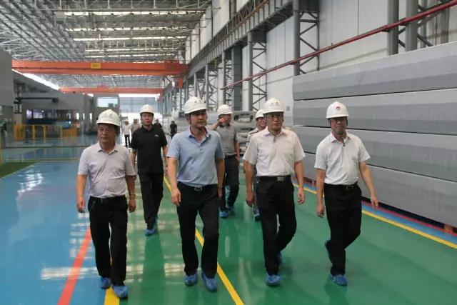 在豫聯工業園區觀景臺,張松江總經理向司毅銘局長一行介紹了公司的基本情況、園區的建設情況及企業的轉型升級情況。隨后,考察團一行深入到擴建高精鋁進行了參觀,詳細了解了高精鋁的生產工藝、產品研發、市場開發等情況,對企業取得的顯著轉型成果給予高度評價。