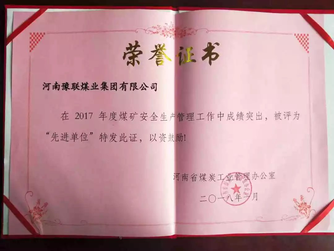 近日,2018年河南省煤炭工作會議暨安全生產工作會議在鄭州市召開,會議總結了2017年的工作,分析了目前面臨的形勢,對2018年的重點工作進行了部署,同時還對2017年安全生產管理工作先進單位和先進個人、安全生產標準化建設先進煤礦和個人以及河南省第一批煤礦安全培訓示范基地頒發了證書或標牌。河南豫聯煤業集團有限公司獲得2017年度“河南省煤炭工業安全生產先進單位”獎。