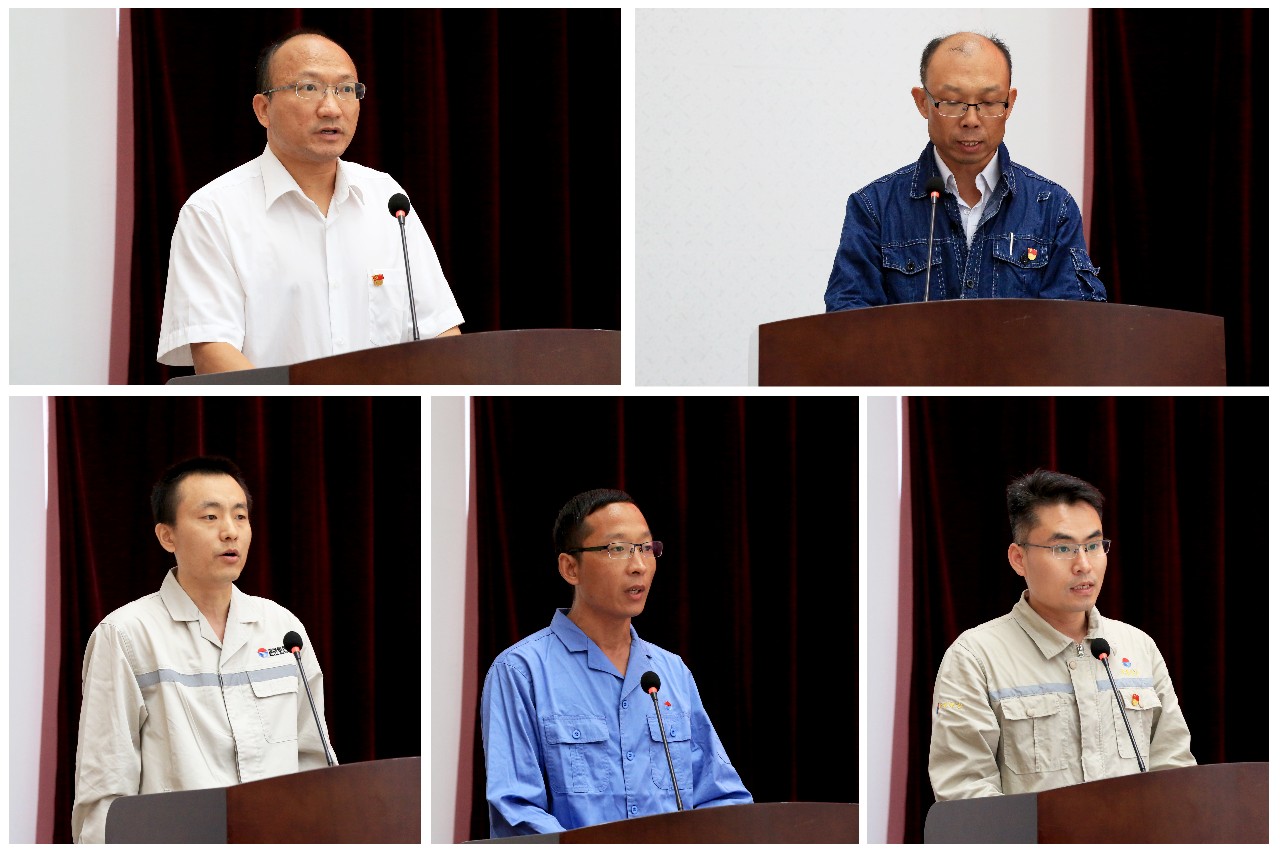 會議在雄壯的國歌聲中拉開序幕。16位預(yù)備黨員面向黨旗莊嚴(yán)宣誓,光榮加入中國共產(chǎn)黨,全體與會黨員重溫了入黨誓詞。胡永杰、張華、張學(xué)、張國培、張海峰五位同志分別作為先鋒黨員代表、“時代楷模”代表、“師帶徒”優(yōu)秀師傅代表、技術(shù)比武獲獎?wù)叽怼⑾蠕h黨支部代表進(jìn)行了精彩發(fā)言,充分體現(xiàn)了先進(jìn)黨員、先進(jìn)員工在不同崗位上無私奉獻(xiàn)、精益求精的崗位工匠精神,值得全體員工學(xué)習(xí)借鑒。