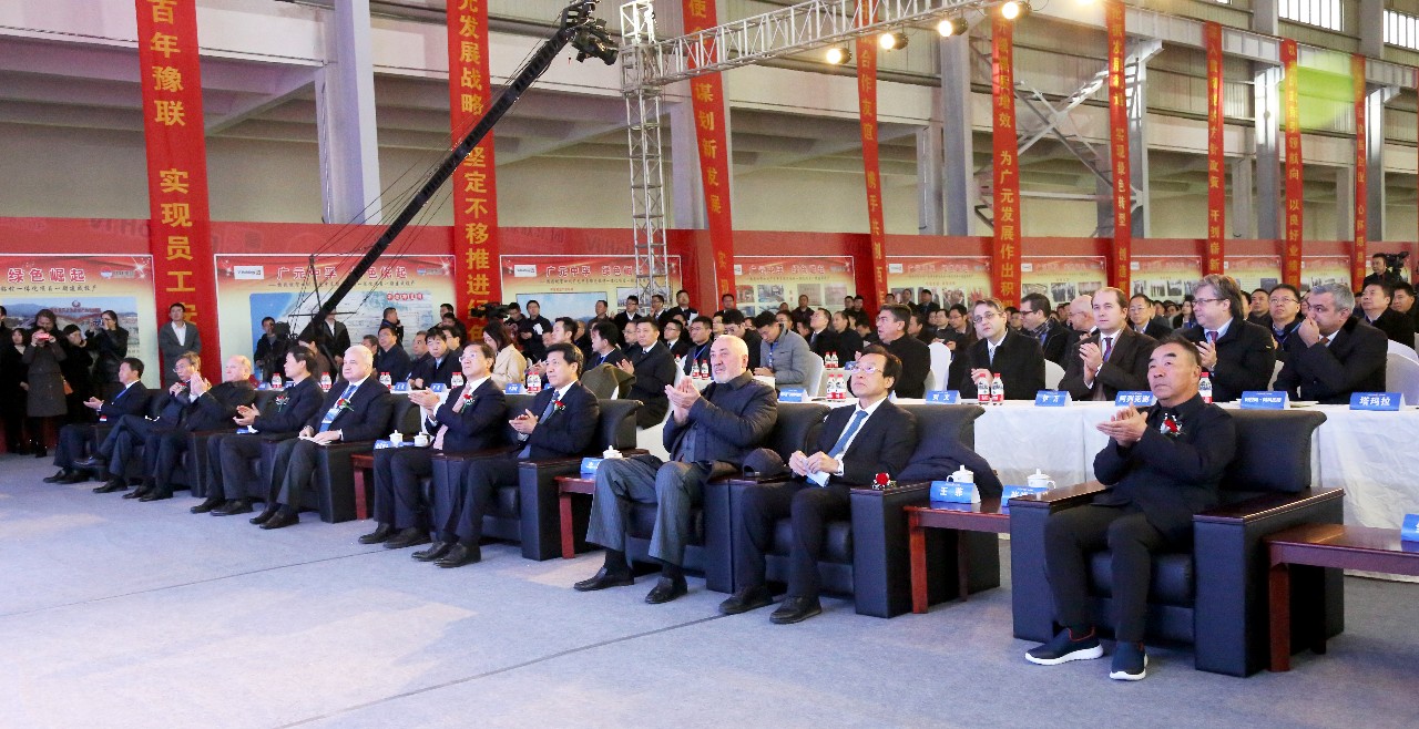 四川省副省長王鳳朝、俄羅斯駐華大使安德烈·杰尼索夫、中國政府歐亞事務特別代表李輝、四川省經信廳廳長陳新有、豫聯集團控股股東俄羅斯Vi Holding集團總裁維塔利·馬欽斯基、Vi Holding集團第一副總裁克拉斯諾夫、廣元市委書記王菲、中國有色金屬工業協會副會長文獻軍、豫聯集團名譽董事長張洪恩、豫聯集團董事長賀懷欽共同為項目投產剪彩。