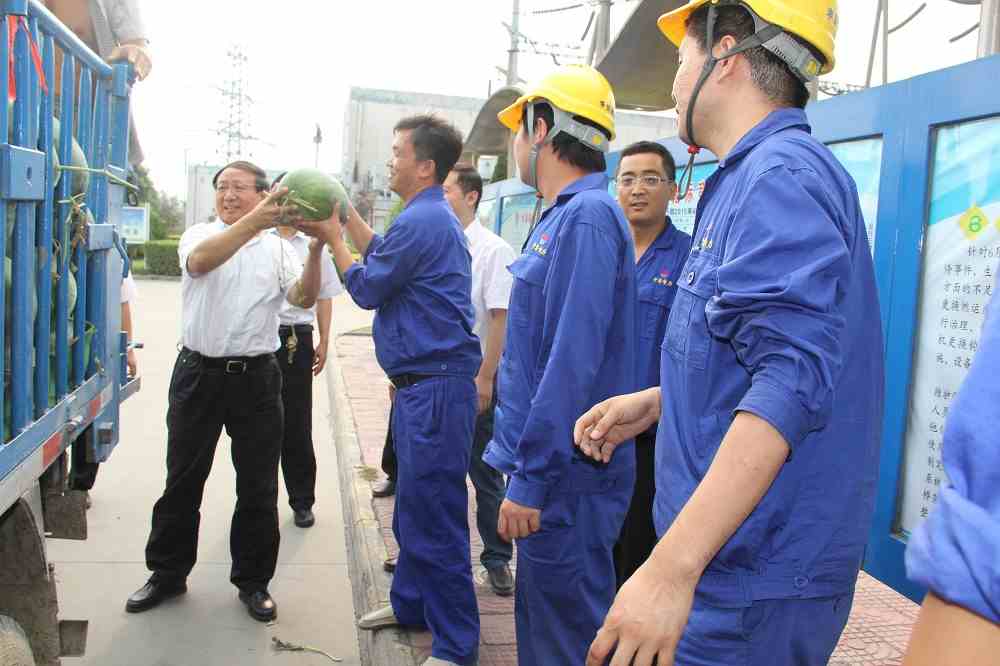 進入7月以來,持續高溫,熱氣襲人,但公司廣大員工不畏困難,戰高溫、斗酷暑,依舊堅守崗位,為實現公司全年目標而奮力拼搏。7月13日下午,受集團公司張洪恩董事長的委托,公司黨委書記馬路平帶領部分班子成員深入生產現場,看望、慰問奮戰在高溫一線的廣大員工,為他們送去了夏季防暑物品,為員工們帶來了絲絲“清涼”。